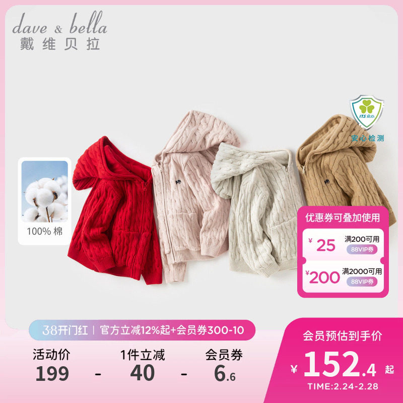 戴维贝拉儿童毛衣外套春装男女童纯棉绞花针织衫宝宝麻花拉链开衫