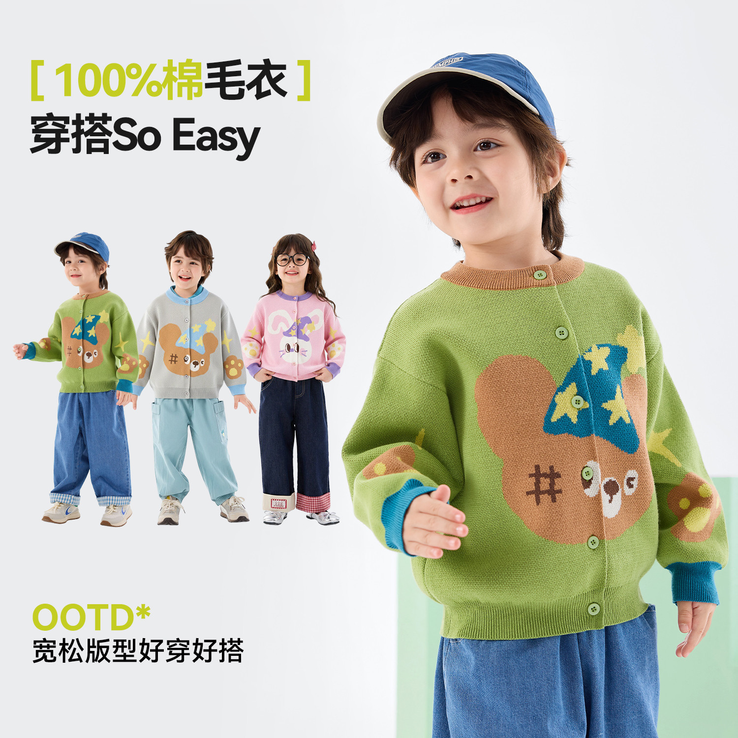 [过年服]威尔贝鲁宝宝毛衣开衫春秋学院风男女童针织外套洋气时髦