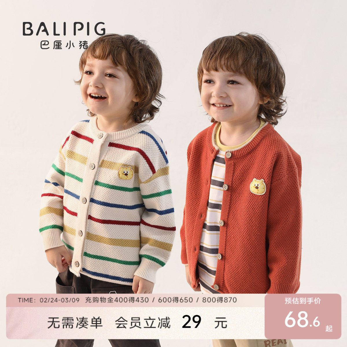 贝肽斯儿童毛衣针织开衫2026春秋新款男女童宝宝毛线外套百搭爆款