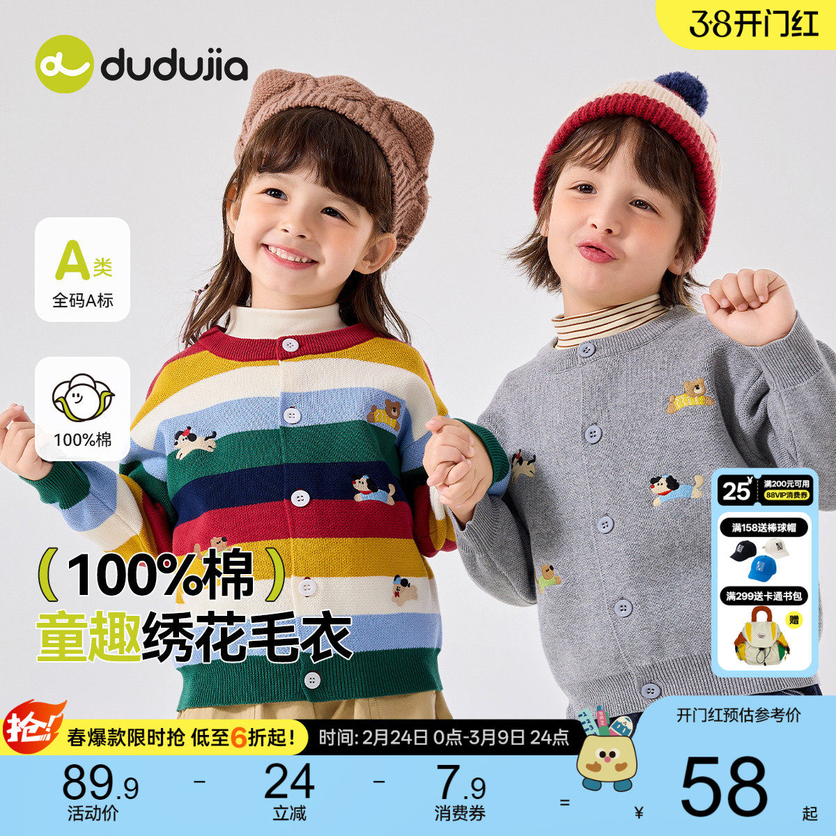 嘟嘟家男童毛衣女童儿童针织开衫春装男宝宝外套纯棉上衣童装衣服