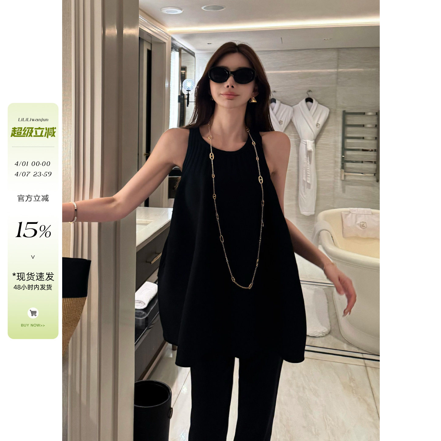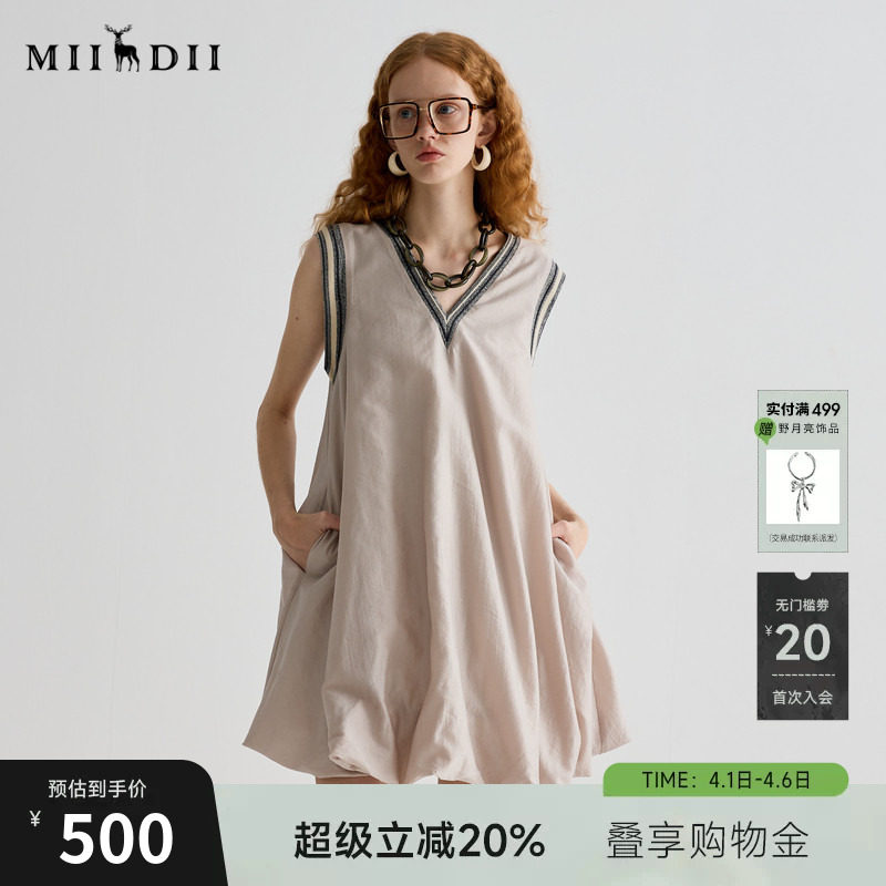 wana try极简气质棉质无袖连衣裙背心裙高腰拼接休闲蓬蓬宽松长裙