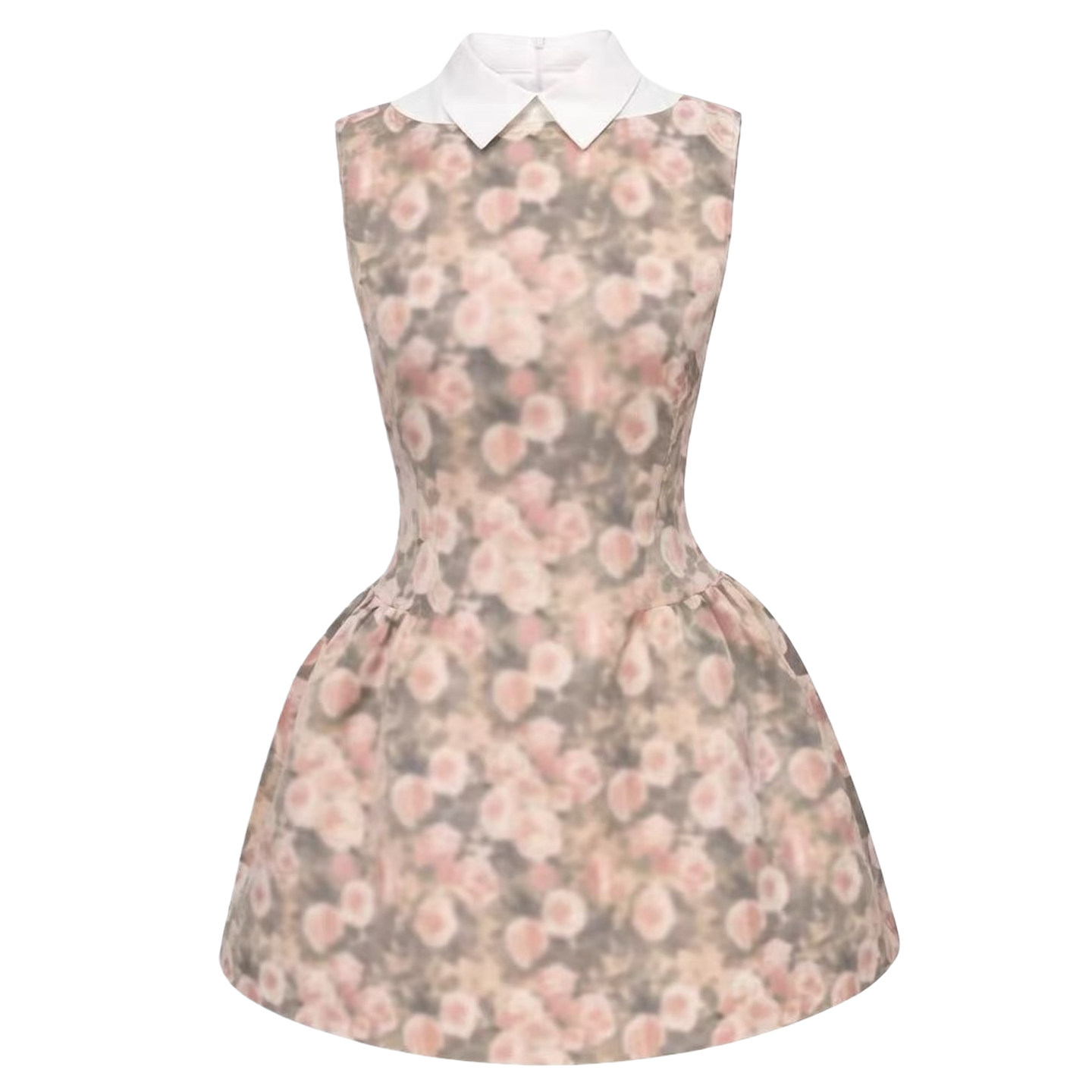 现货 玫瑰油画衬衫领无袖连衣裙女春夏千金风蓬蓬修身收腰背心裙