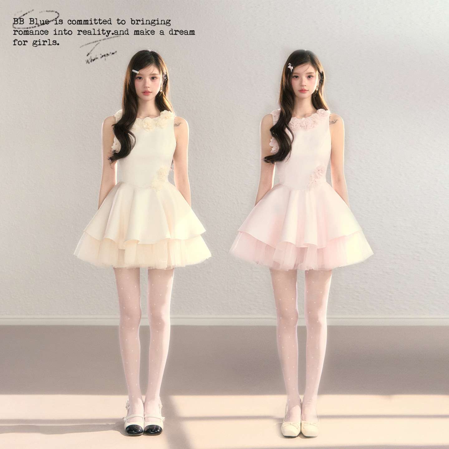 BBBLUE/花神降临/富家千金无袖立体花春夏新款拼接网纱无袖蓬蓬裙