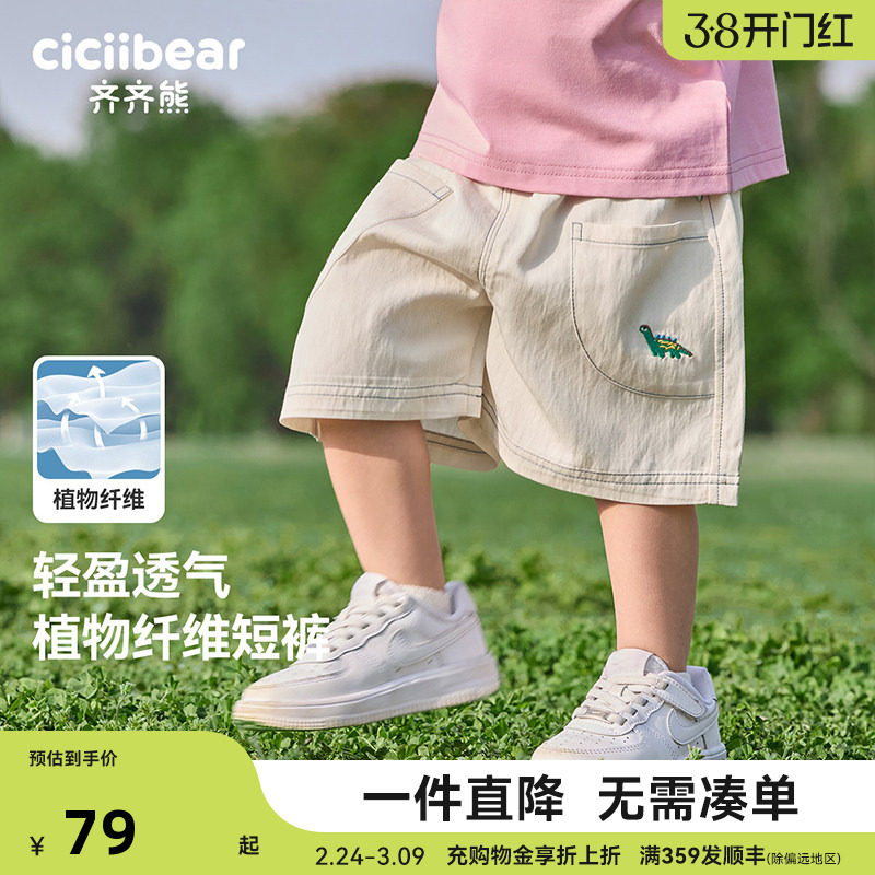 [植物纤维恐龙裤]齐齐熊男童短裤夏季宝宝五分裤子儿童休闲裤女童
