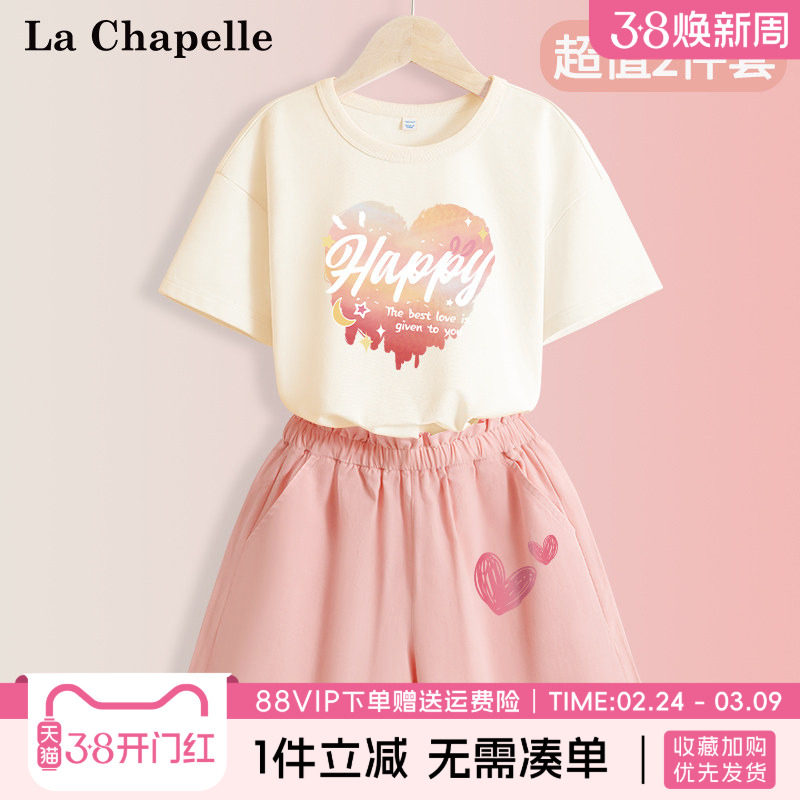 拉夏贝尔女童夏套装2026新款儿童夏季短裤女大童纯棉短袖女孩夏装