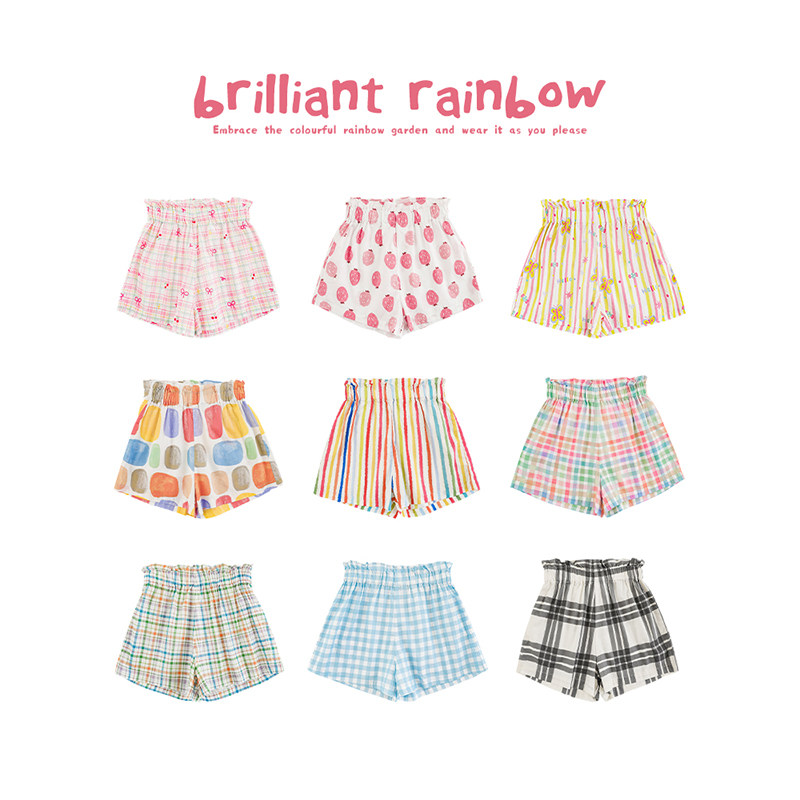 幼悠女童缤纷炫彩数码印花短裤夏季柔软透气清凉自由宽松休闲裤子