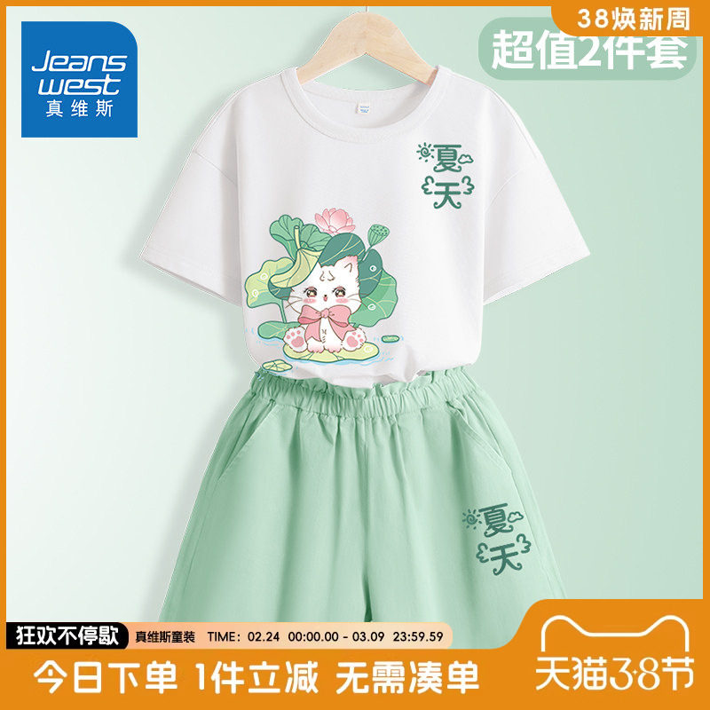 真维斯童装女童短裤夏季大童2026新款外穿纯棉短袖儿童夏套装夏装