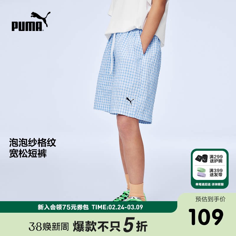 PUMA彪马童装26春夏儿童短裤男童女童运动中裤衬衫直筒网格裤子