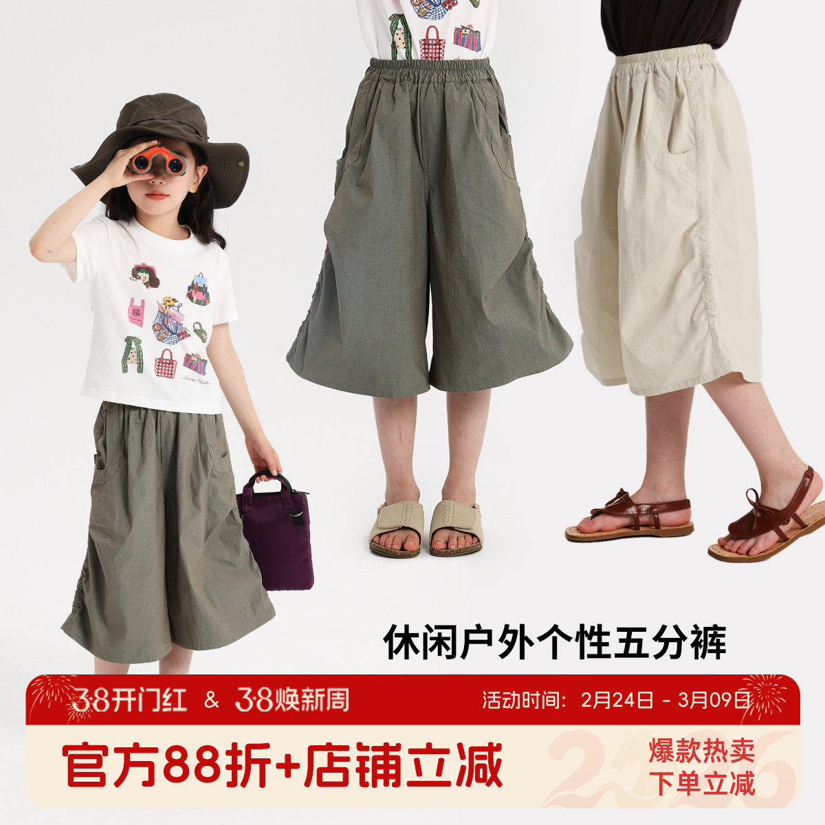 布丁哈鲁童装夏装女童洋气短裤子2026新款儿童百搭休闲户外五分裤