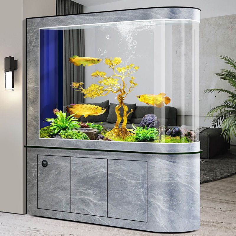 2025年新款轻奢子弹头屏风隔断金鱼缸水族箱客厅家用超白玻璃过滤