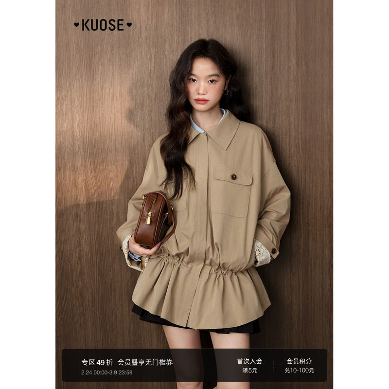- 短款宽松风衣外套