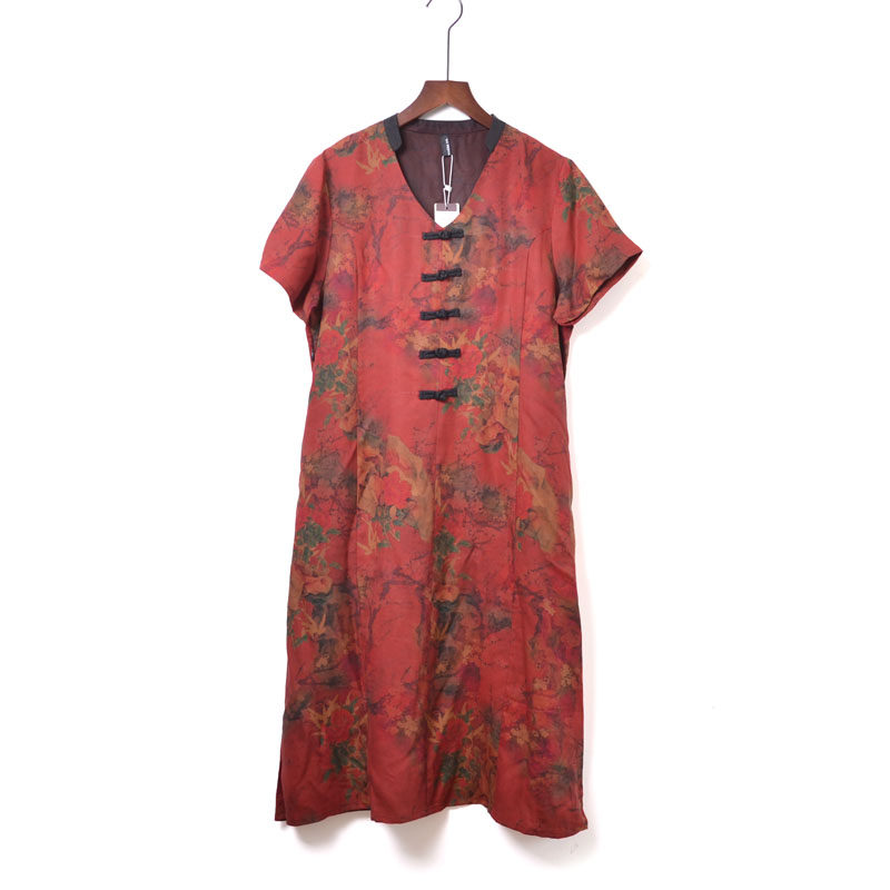 品牌女装复古时尚中老年香云纱莨绸宽松大码连衣裙妈妈真丝裙子女
