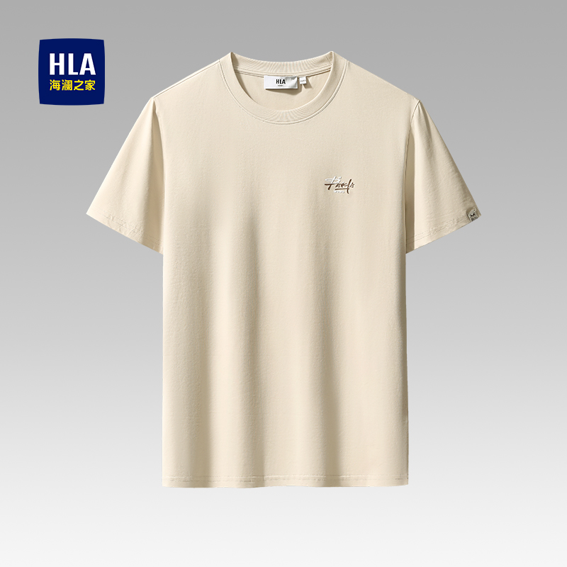 HLA/海澜之家印花舒适短袖父亲T恤2025夏季新款纯棉透气圆领t恤男