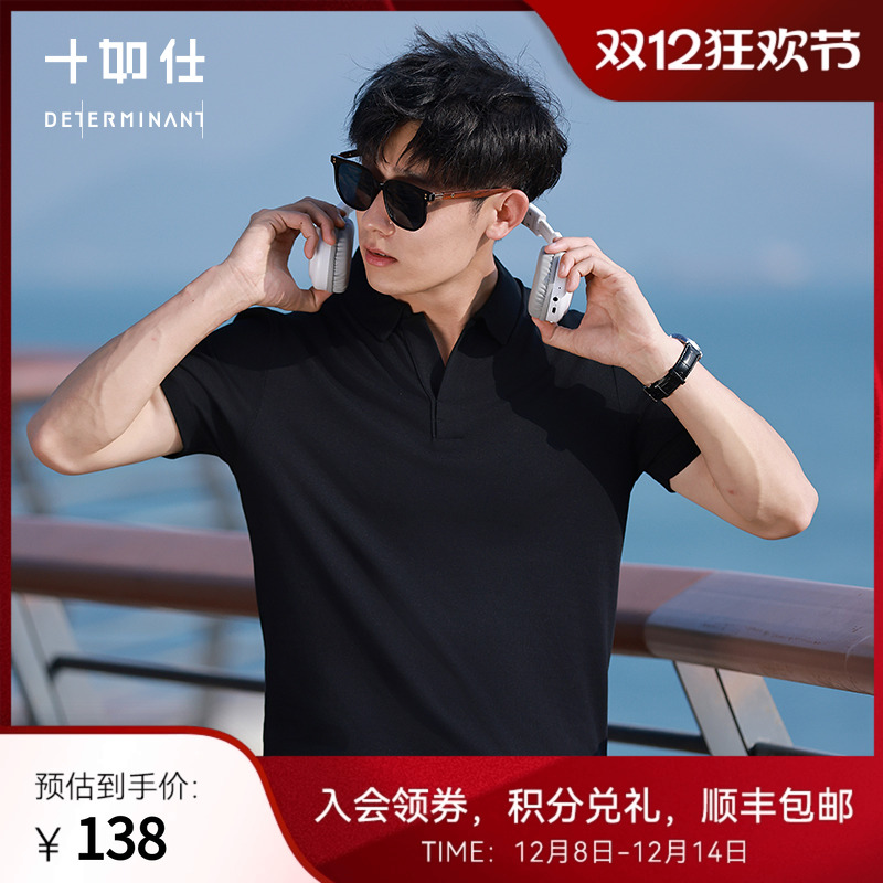 十如仕父亲速干polo衫短袖高尔夫休闲男士海鸥领V领透气T恤P12