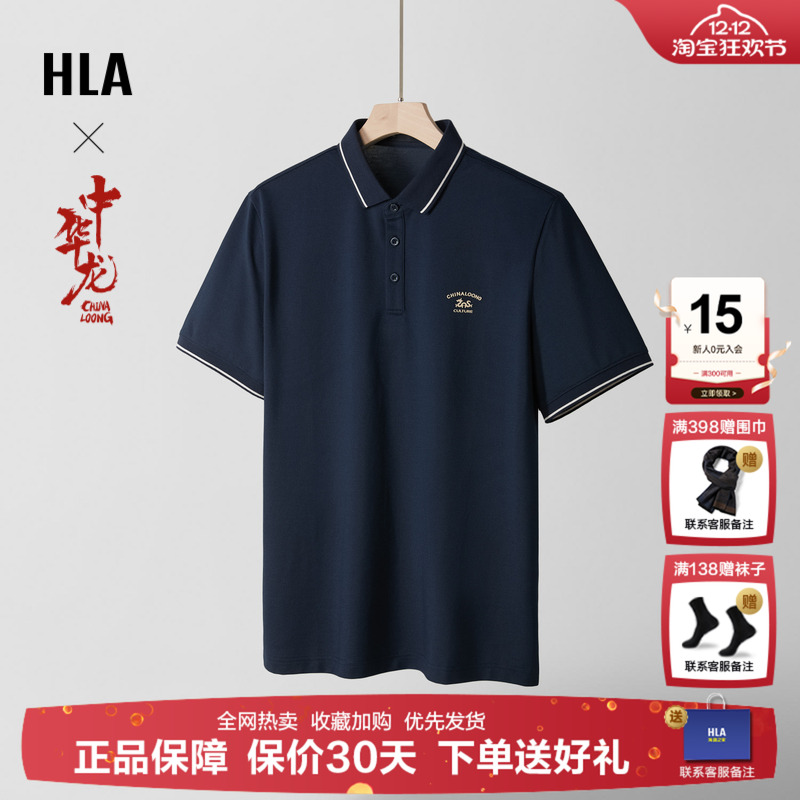 HLA/海澜之家中华龙POLO衫25夏季新款撞色凉感翻领商务父亲短袖男