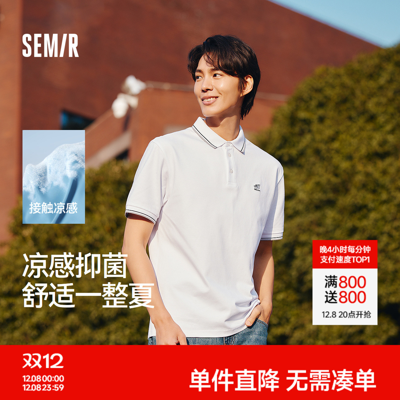 森马POLO衫男凉感抑菌2025夏款通勤t恤短袖上衣百搭父亲节礼物