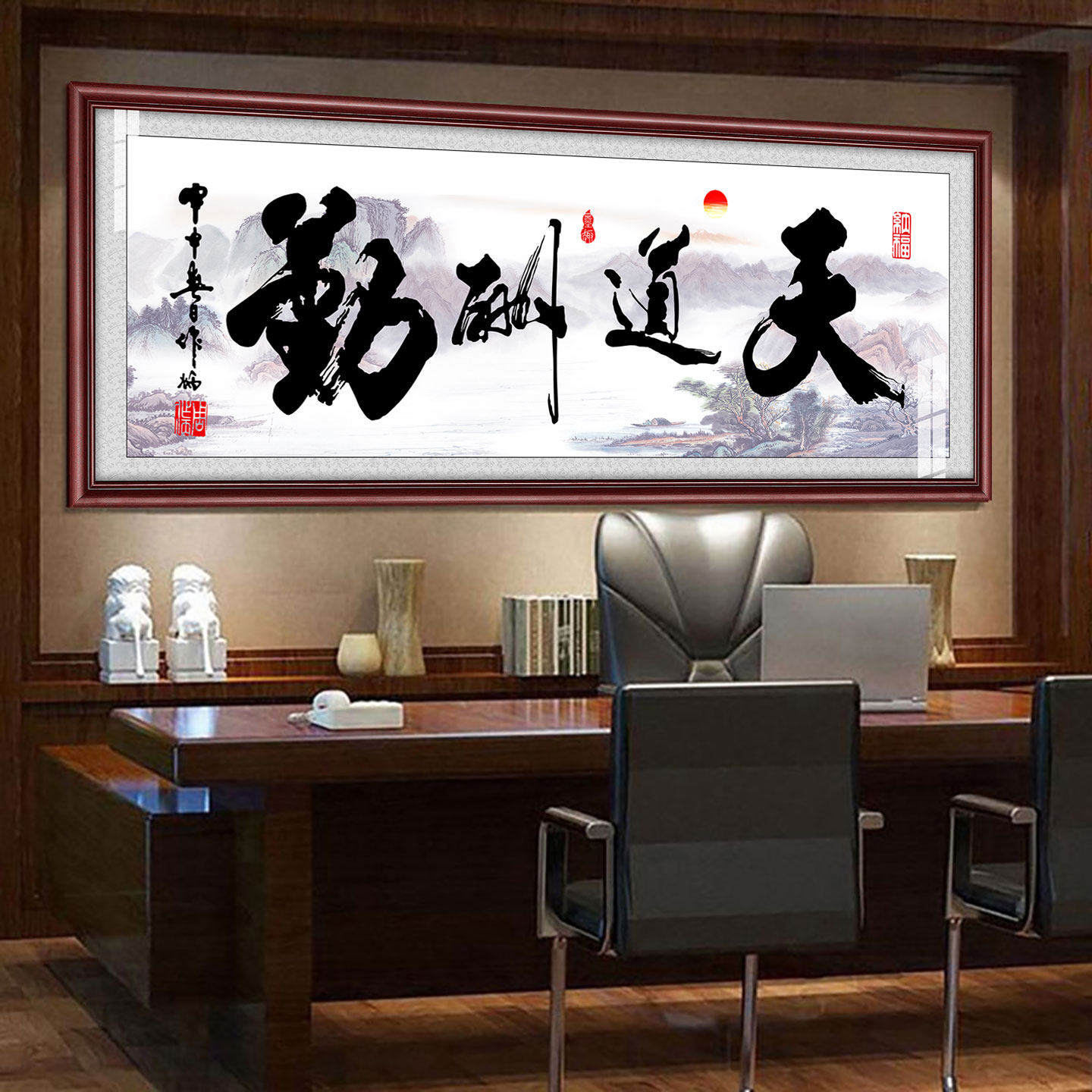 现代装饰画老板办公室背景墙字画格局挂画书法励志天道酬勤自粘画
