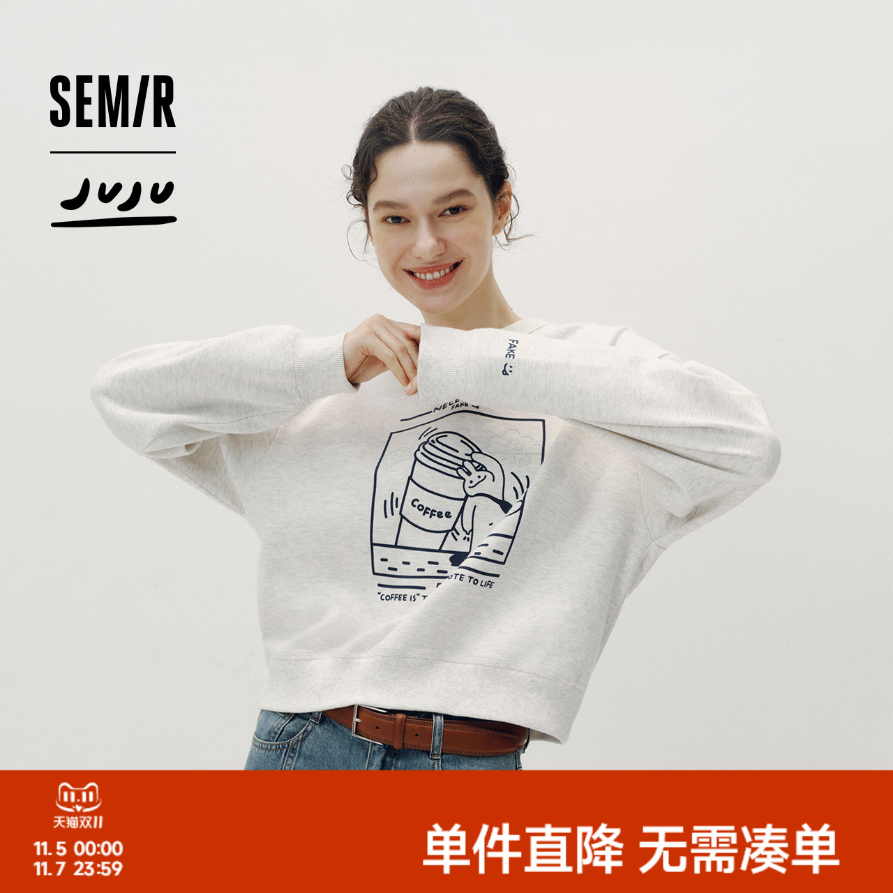[商场同款]森马JUJU联名卫衣女落肩宽松秋季2025新款趣味图案衣服