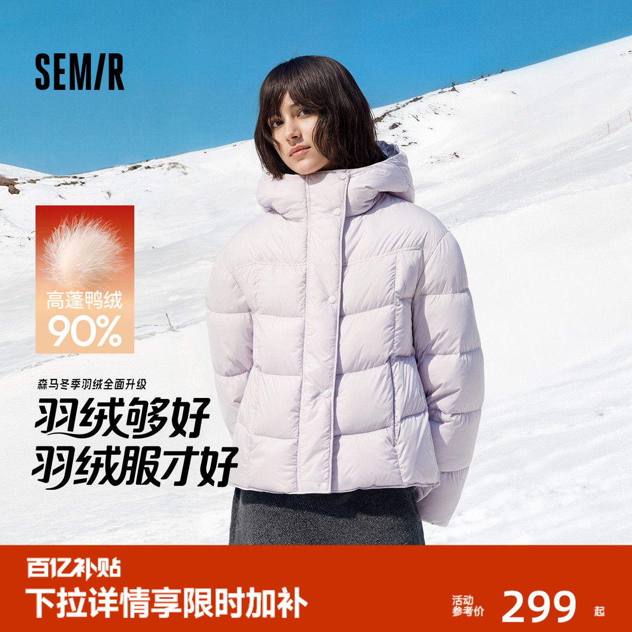 轻松|森马羽绒服女冬90绒子三防发热抗静电2025新款龟背连帽外套