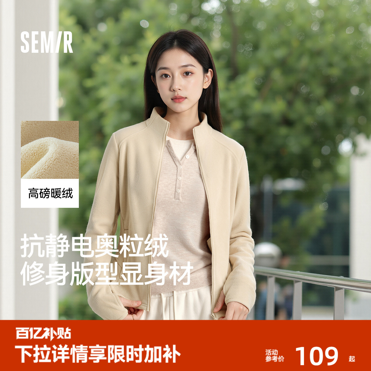 森马外套女分割紧身立领夹克显瘦2025新款冬抗静电摇粒绒内搭上衣