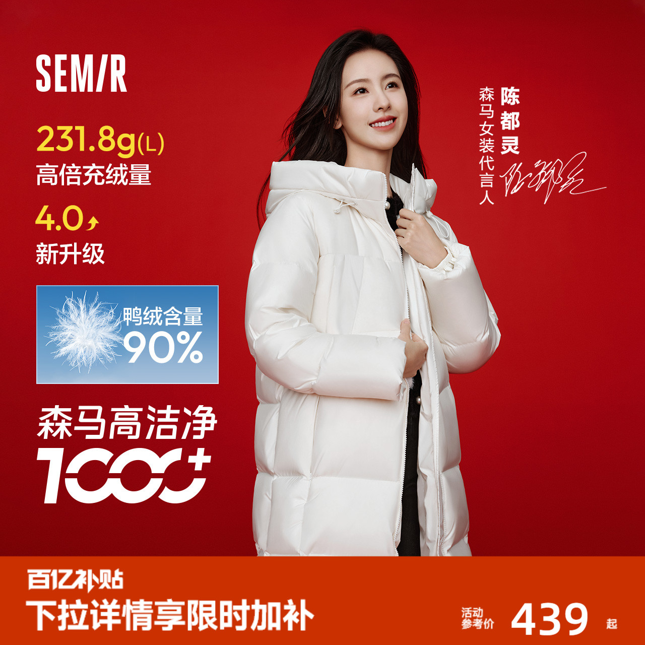 陈都灵|轻松|森马羽绒服女冬长款90绒三防抗静电2025新款纯色连帽