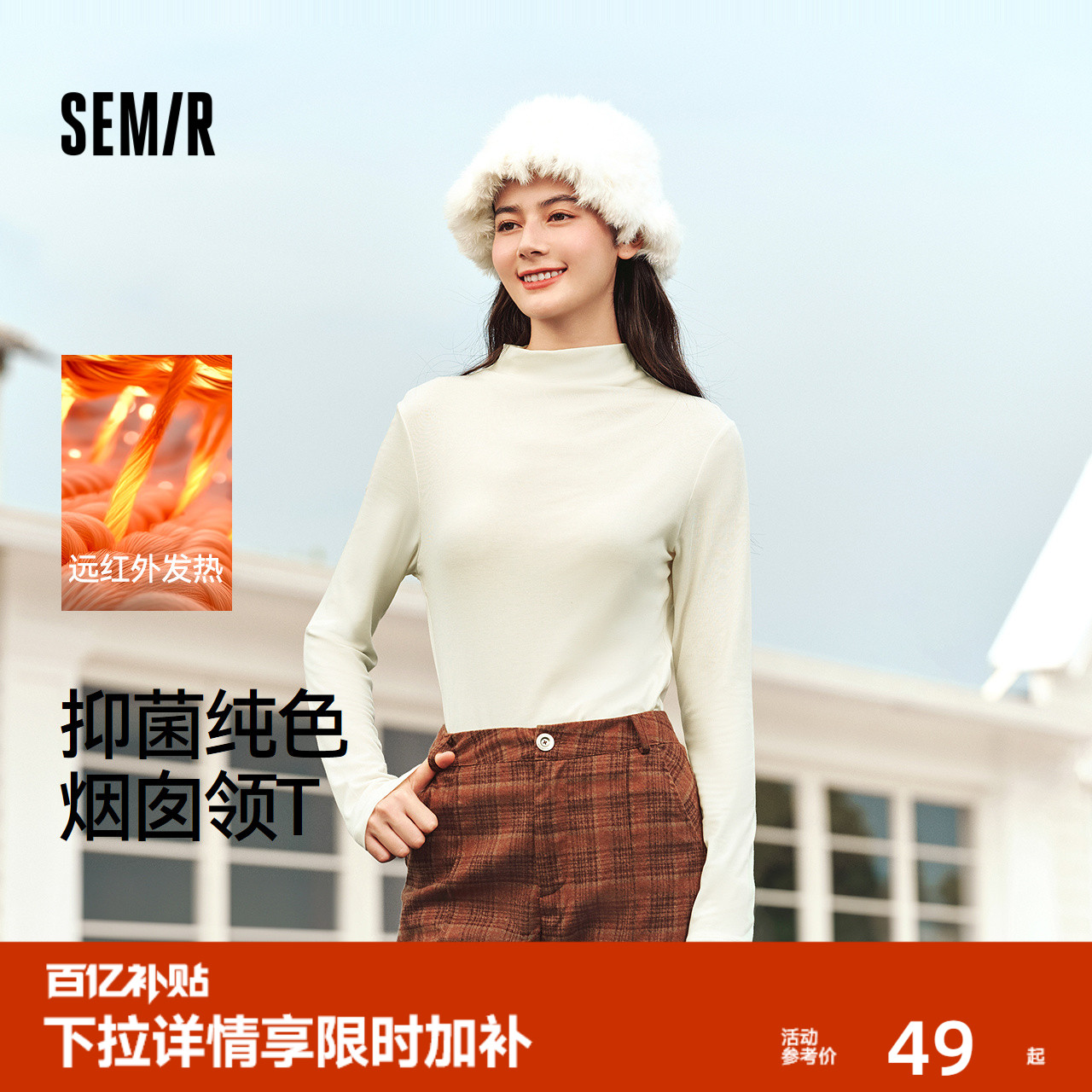 森马长袖T恤女冬半高领发热抑菌纯色修身上衣显瘦百搭气质打底衫