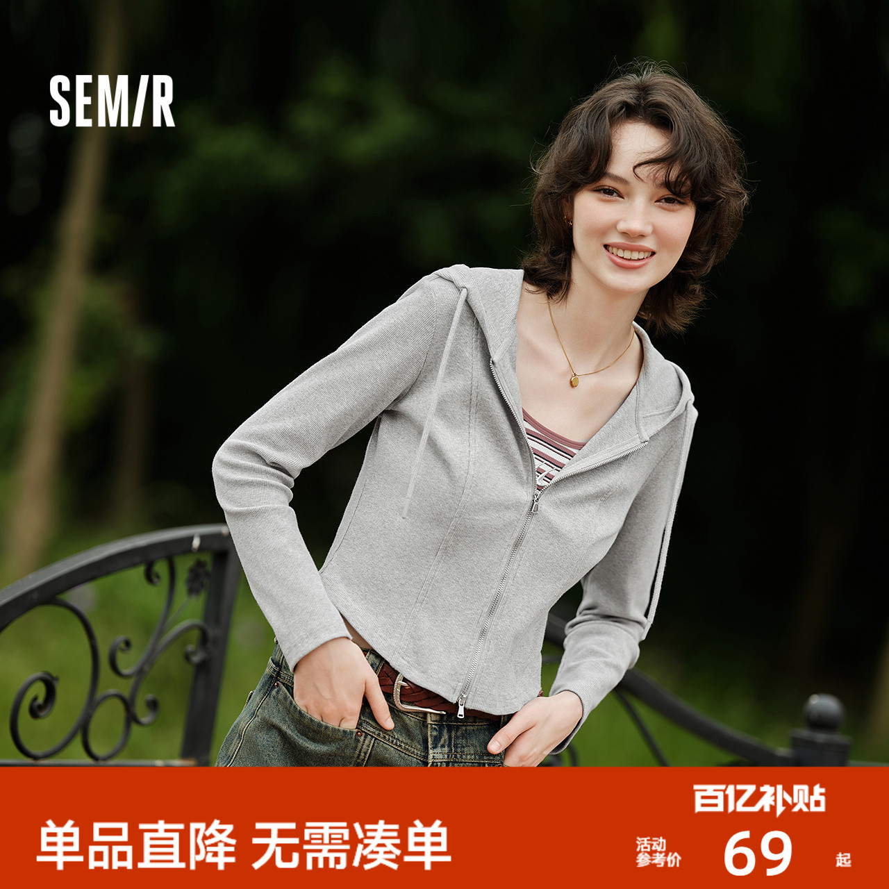 森马外套女短款分割纯色显瘦小个子衣服秋季正肩紧身连帽夹克百搭