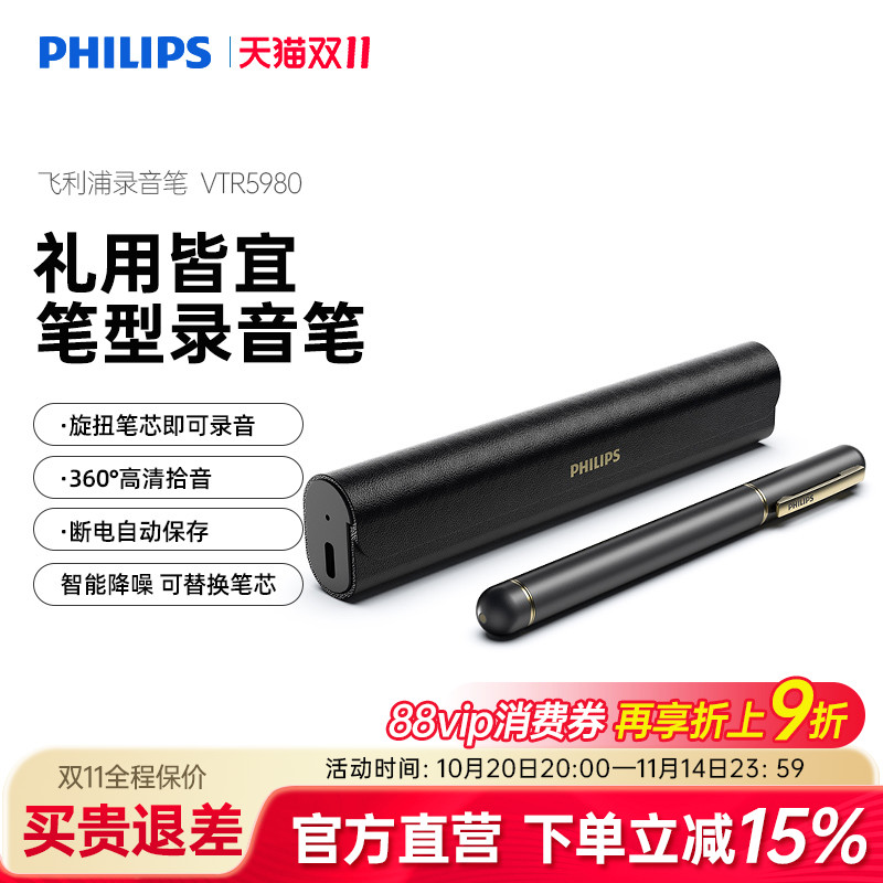 飞利浦VTR5980录音笔专业高清降噪语音转文字轻便小随身商务培训