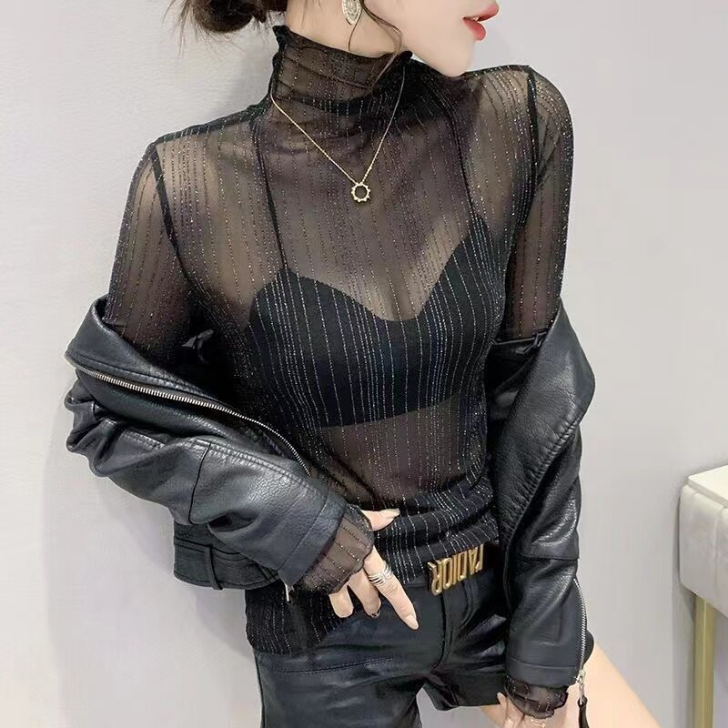 - 性感网纱打底衫