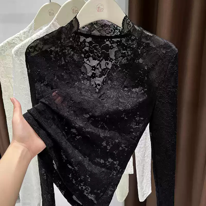 - 蕾丝透明打底衫