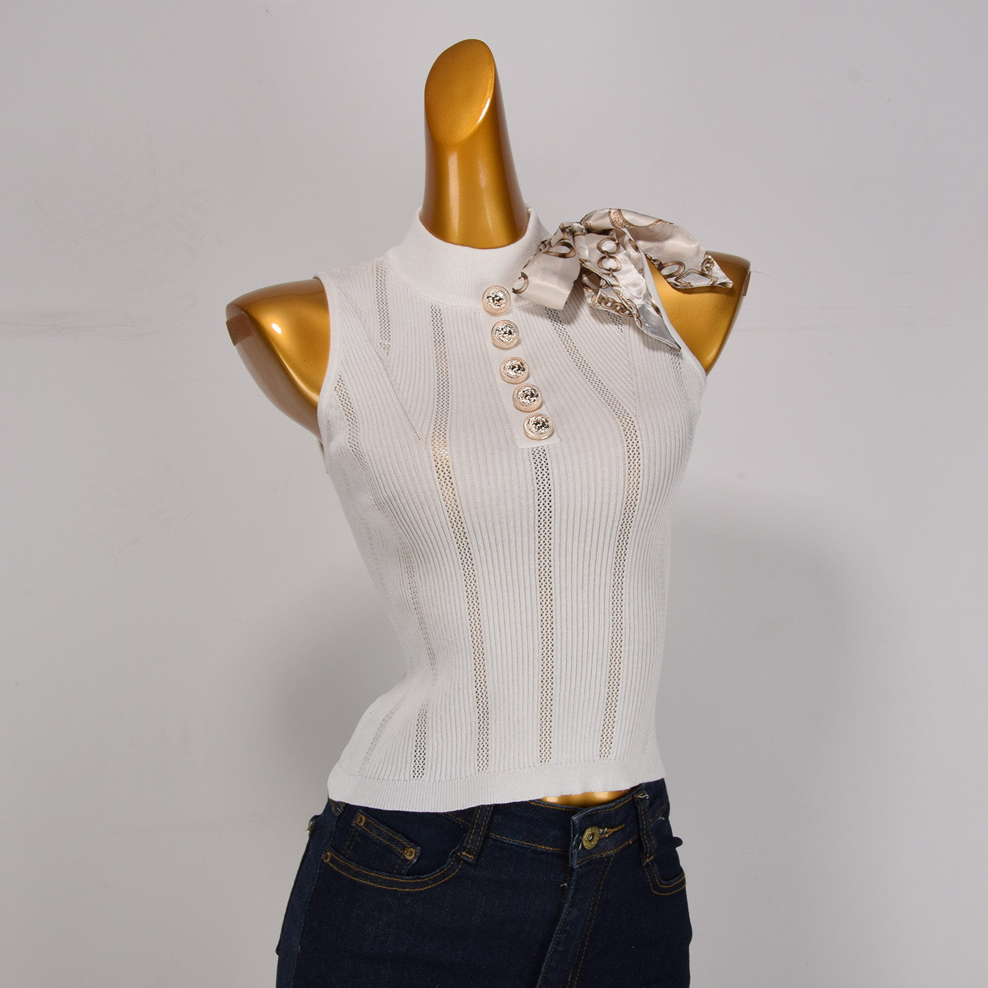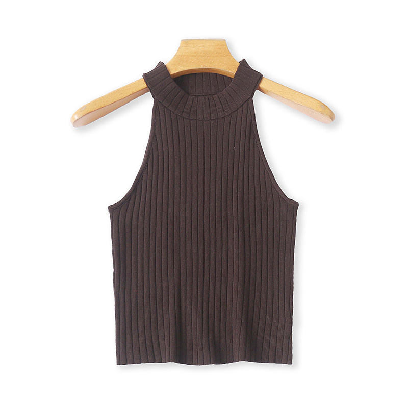 时尚立领无袖背心 夏季新款弹力修身显瘦毛衣马甲女打底上衣03211