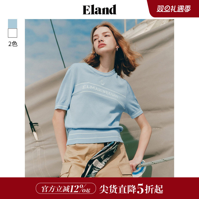 【棉棉冰】Eland衣恋毛衣女圆领棉感舒适短袖针织T恤夏季款