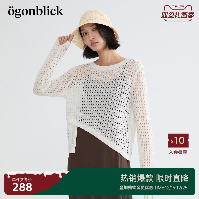 商场同款北欧时刻白色镂空毛衣罩衫女夏季新款百搭时髦针织衫上衣