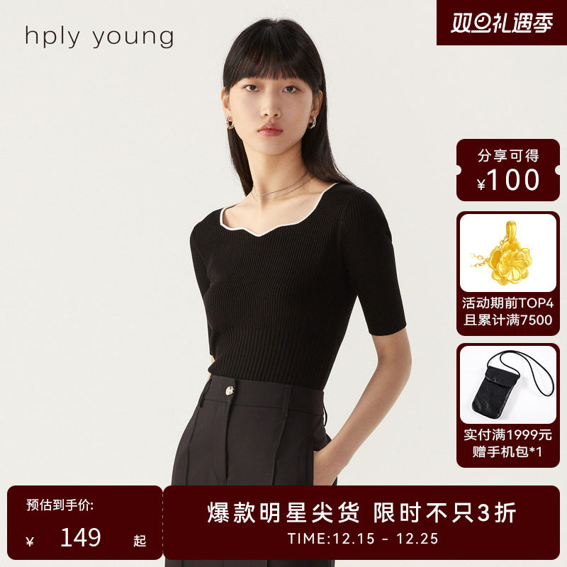 线上专享hply young夏季新款女舒适针织上衣钻石领设计感毛衫