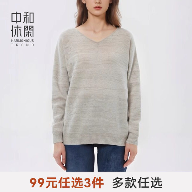 中和休闲中和休闲宽松V领毛衣女春夏季纯色百搭套头打底衫简约休