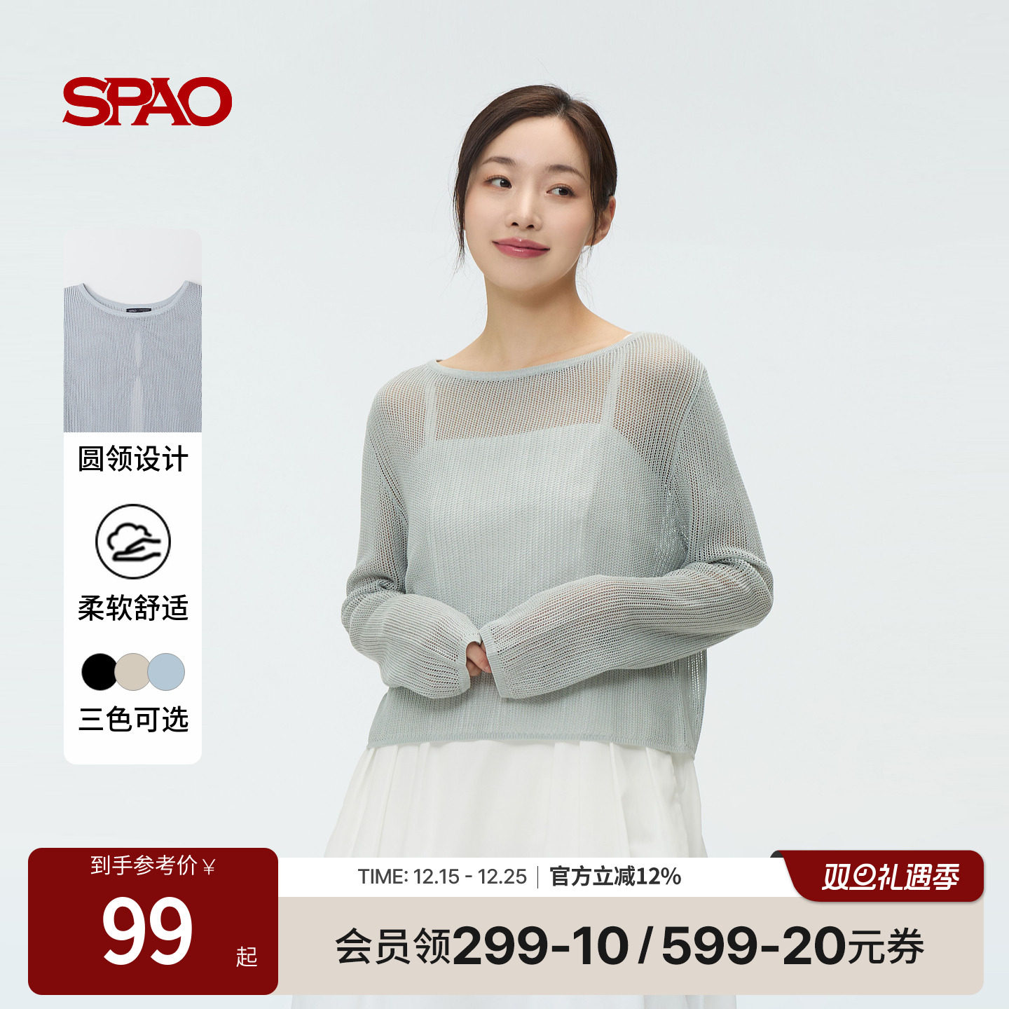 SPAO韩国同款2025年夏季新品女时尚潮流简约镂空透明罩衫长袖毛衣