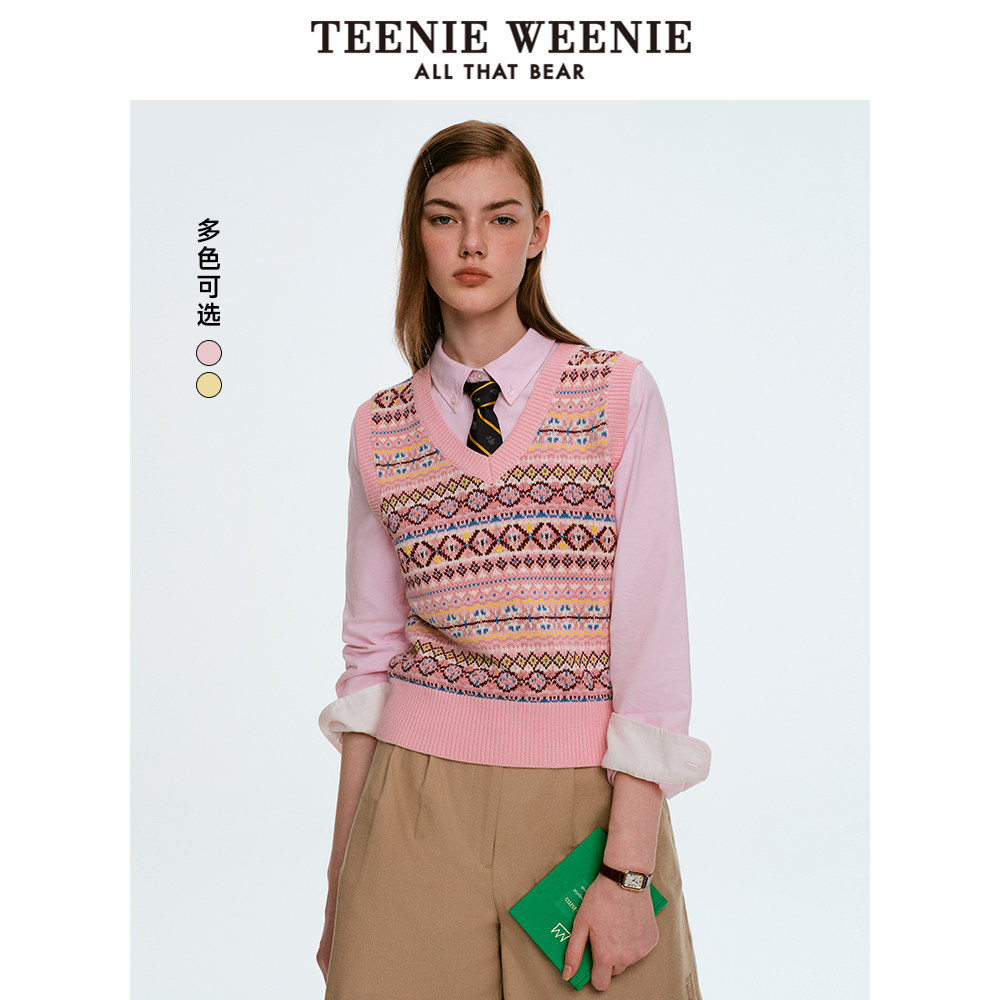 TeenieWeenie小熊奥莱针织T恤夏季新款复古嵌花V领毛衣背心上衣女
