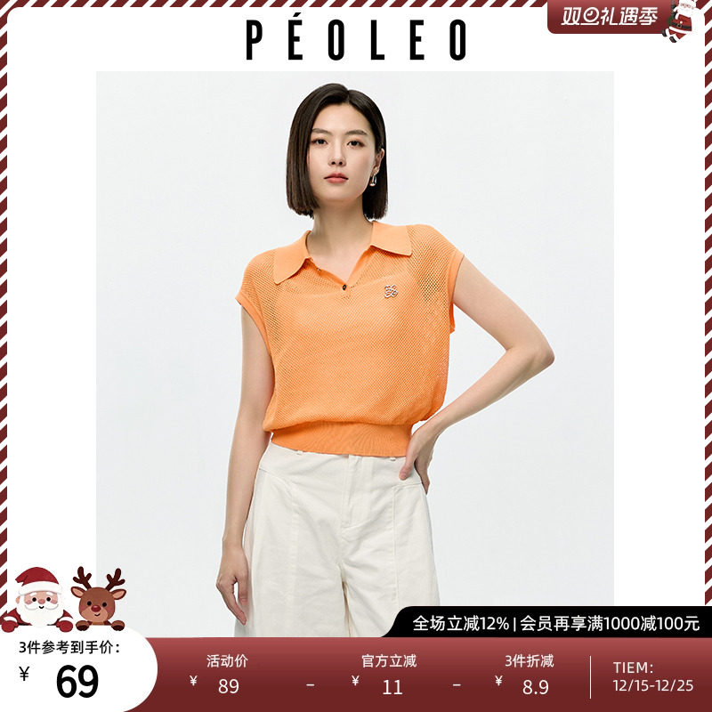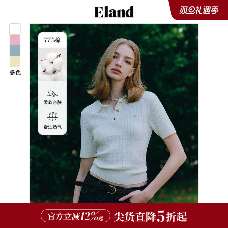 【棉棉冰】Eland衣恋短袖女针织T恤绞花毛衣POLO衫夏季款
