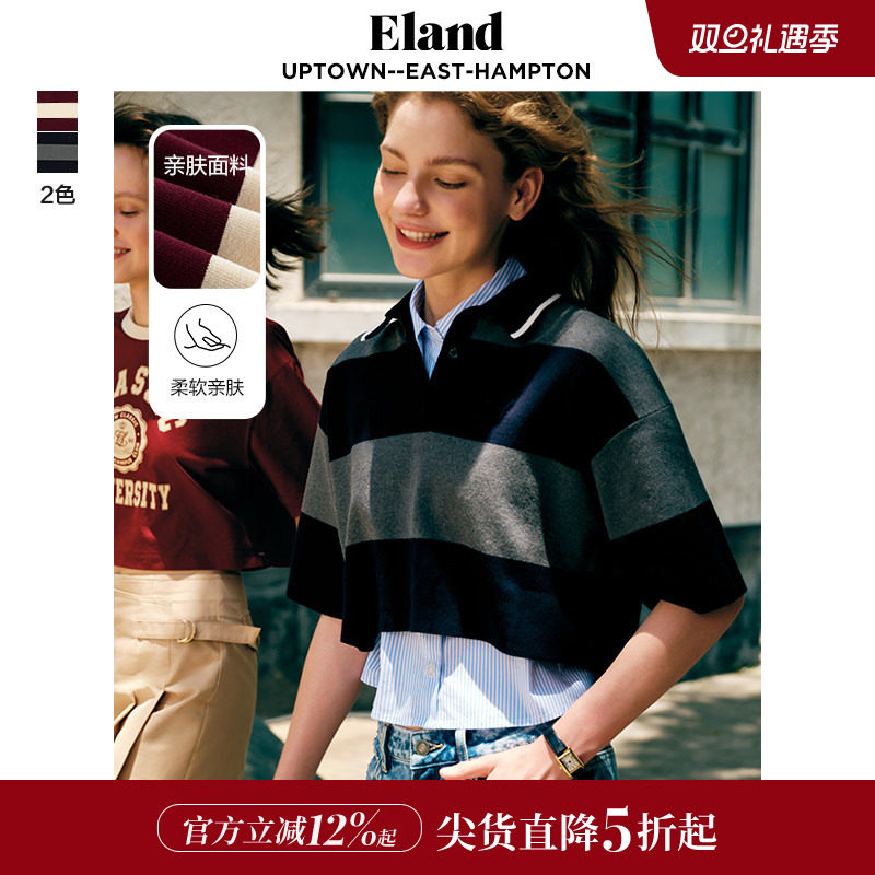 Eland衣恋T恤女清POLO短袖针织衫包容显瘦毛衣内搭夏季款