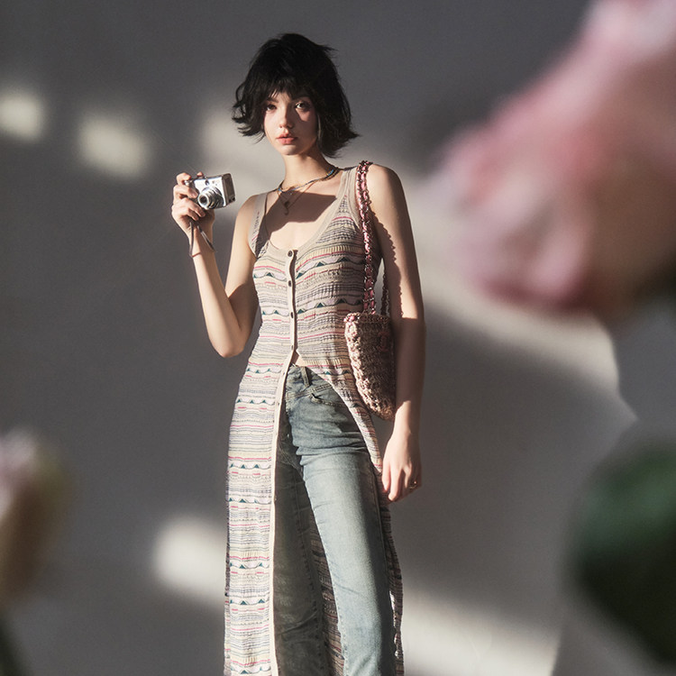 日系甜美纯欲风上衣叠穿夏季针织吊带小众设计可爱花朵毛衣背心女