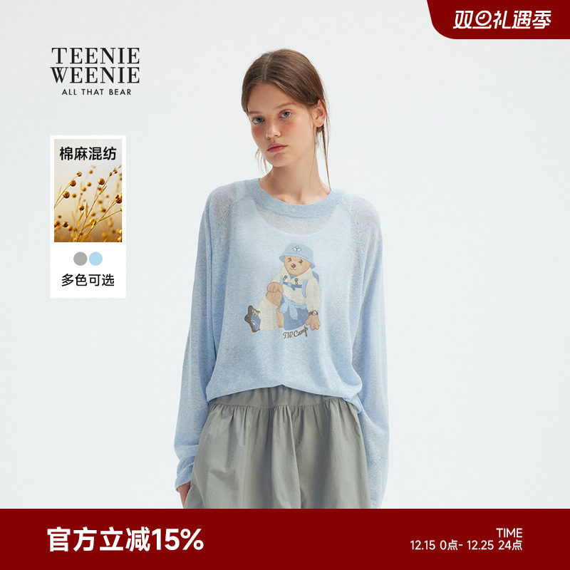 TeenieWeenie小熊女装毛衣2025夏季新款松弛慵懒风棉麻混纺两件套