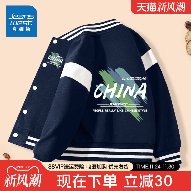 真维斯儿童外套男童棒球服春秋款2025新款中大童秋装男孩秋季衣服
