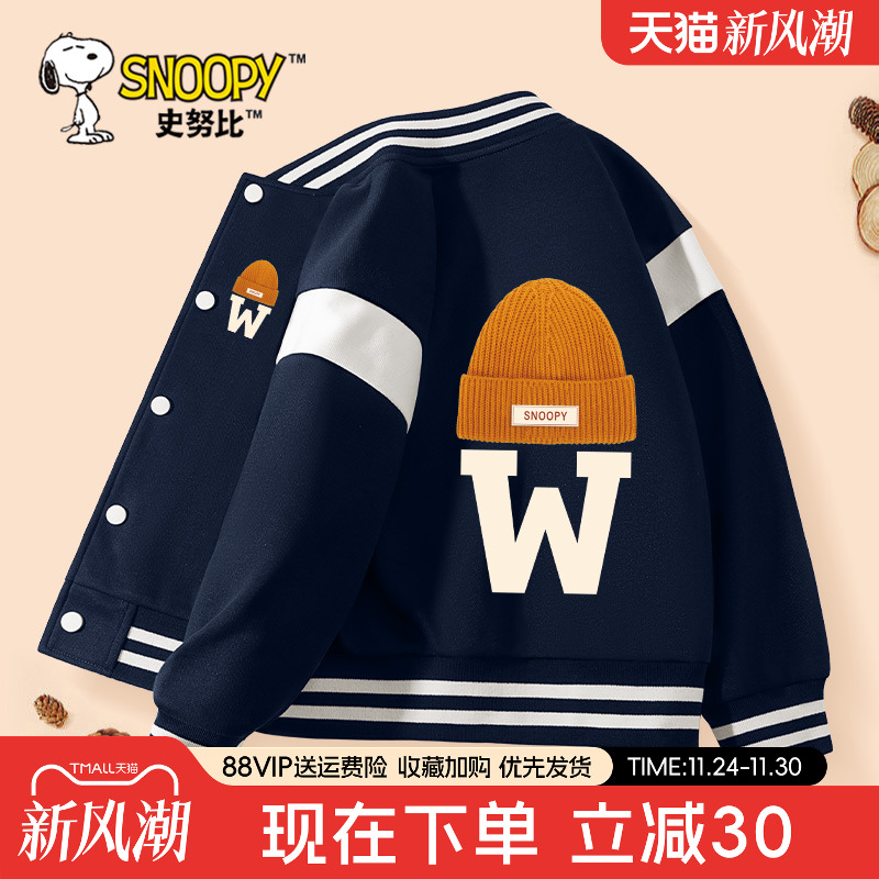 史努比童装男童外套春秋款男大童秋装2025新款开衫上衣儿童棒球服