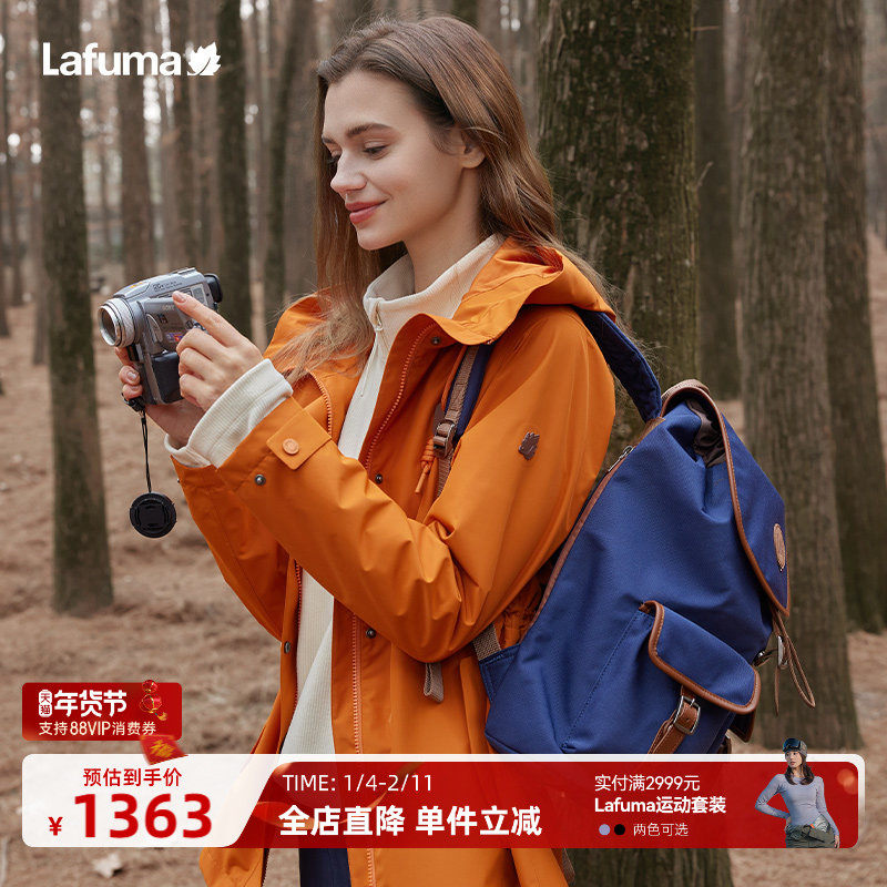 LAFUMA乐飞叶户外冲锋衣II级女士休闲中长款风衣防水透湿夹克外套