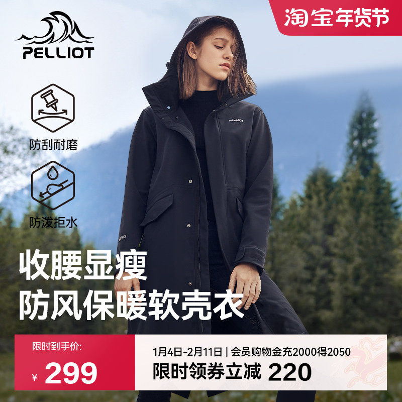 伯希和户外冲锋软壳衣女款防风登山服中长款收腰休闲夹克风衣外套
