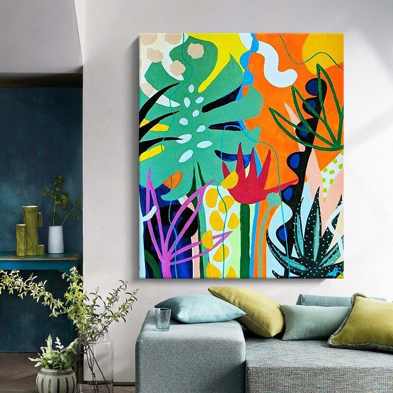 抽象植物纯手绘壁画玄关彩色装饰画客厅艺术挂画大幅落地肌理油画