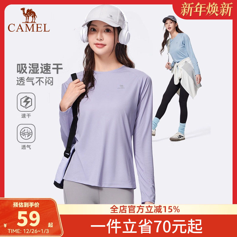 骆驼运动长袖T恤女士2025夏季户外速干衣跑步健身瑜伽服内搭上衣