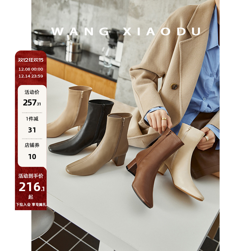 【王小毒】想怎样●粗高跟弹力瘦瘦靴女新款真皮袜靴女小方头短靴