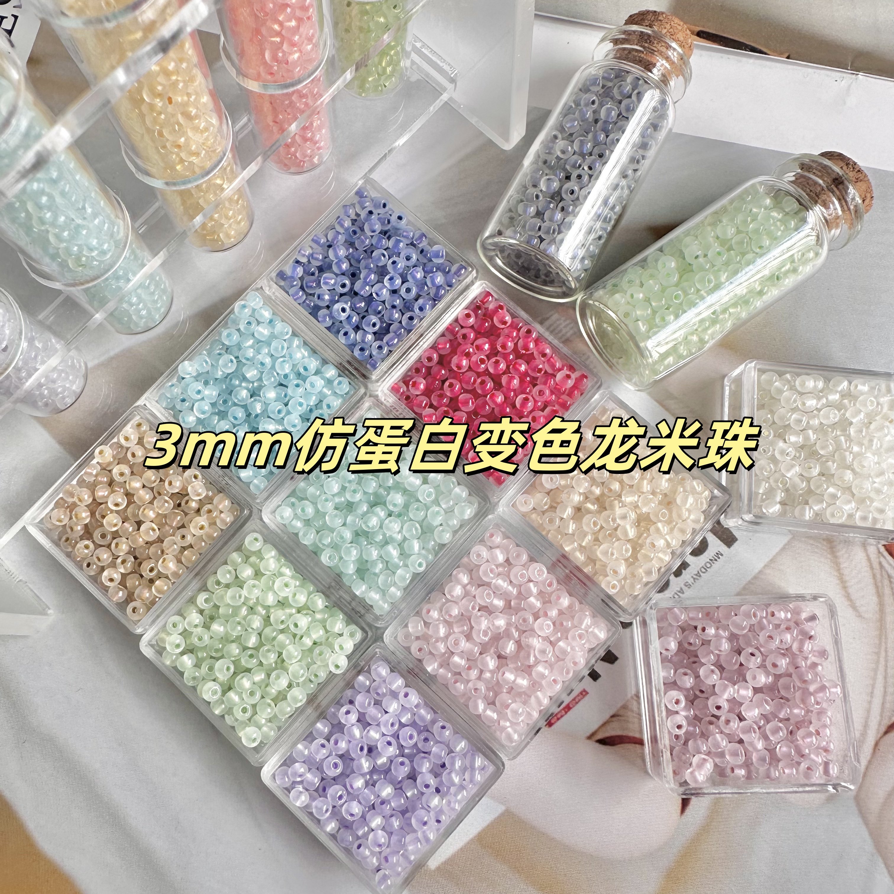 3mm仿蛋白变色龙米珠散珠小珠子手作玻璃珠卡3DIY材料珠玻璃珠