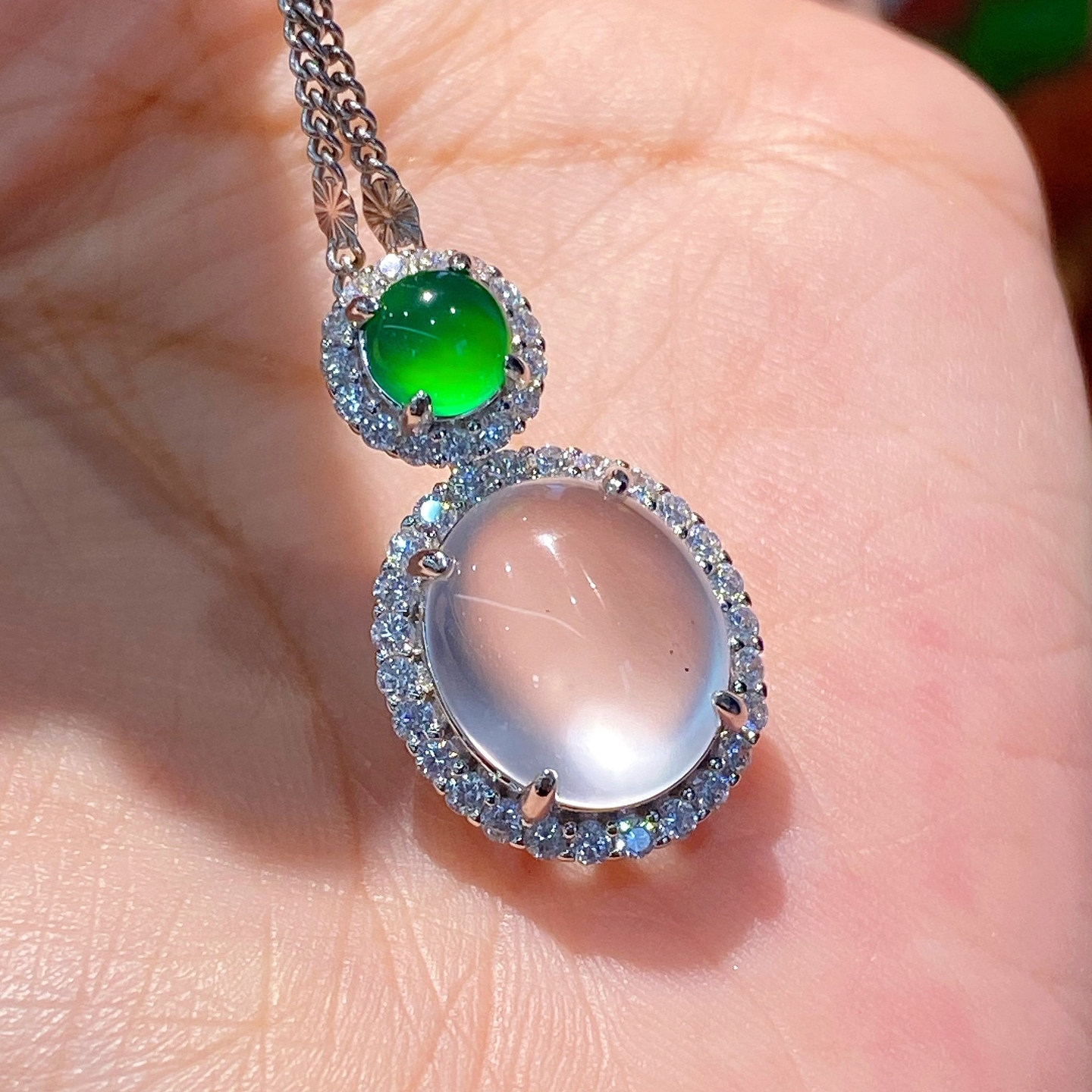 VISING天然玻璃种石英质玉水沫玉红刚玉鸽子蛋吊坠媲美翡翠